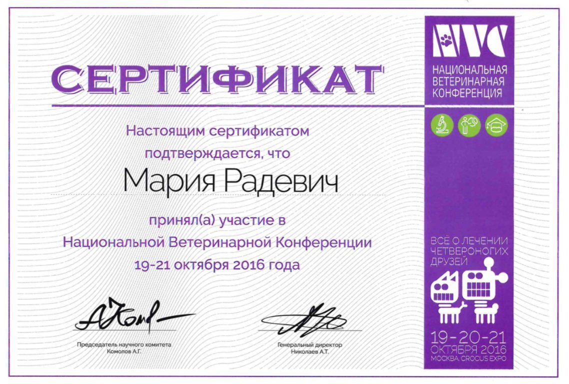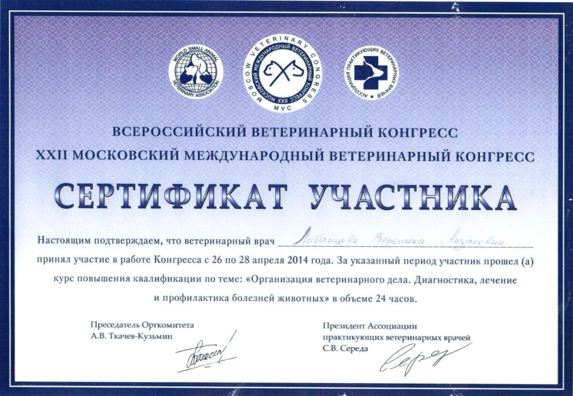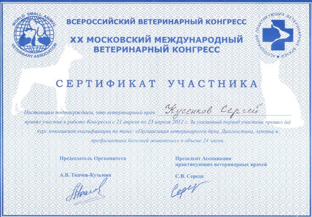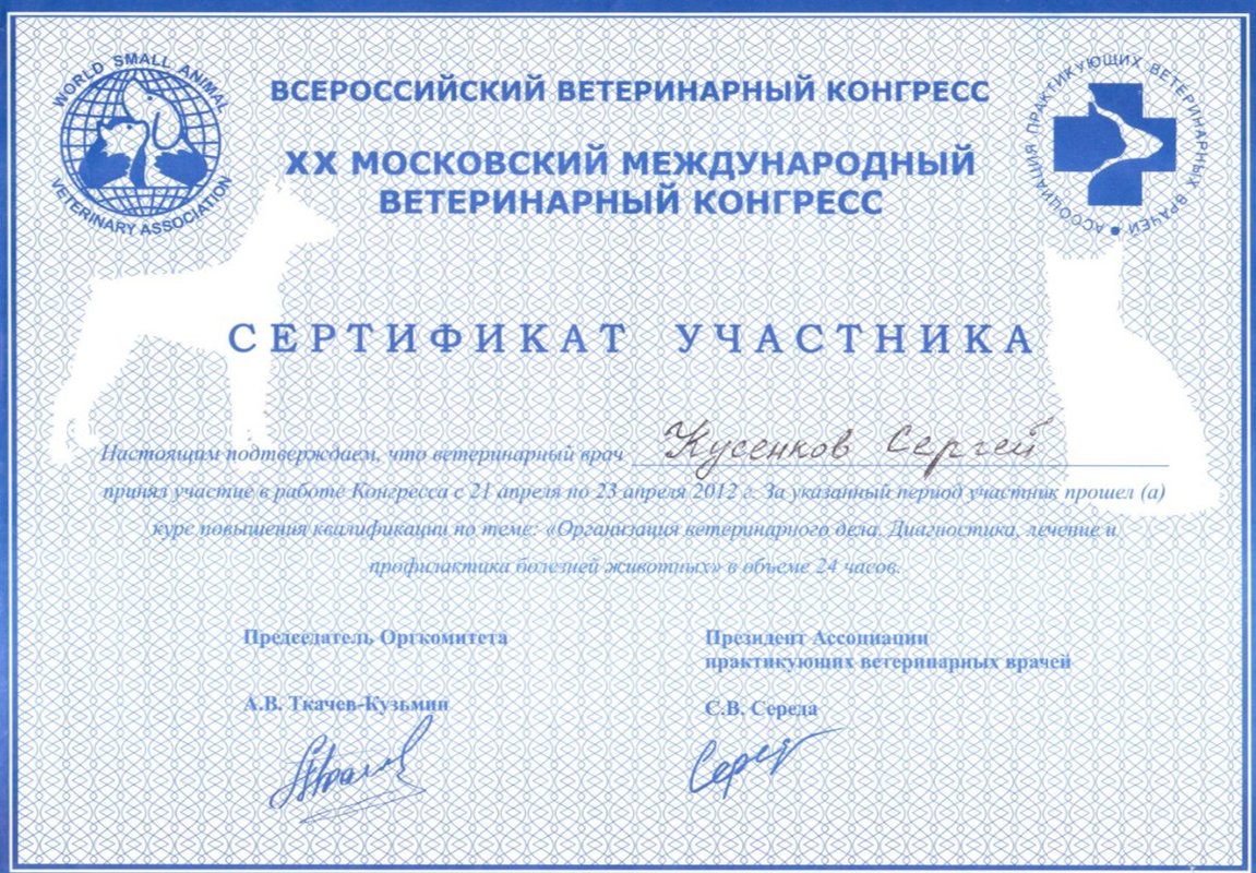 2012 год — участник 20-го Московского Международного Ветеринарного Конгресса.