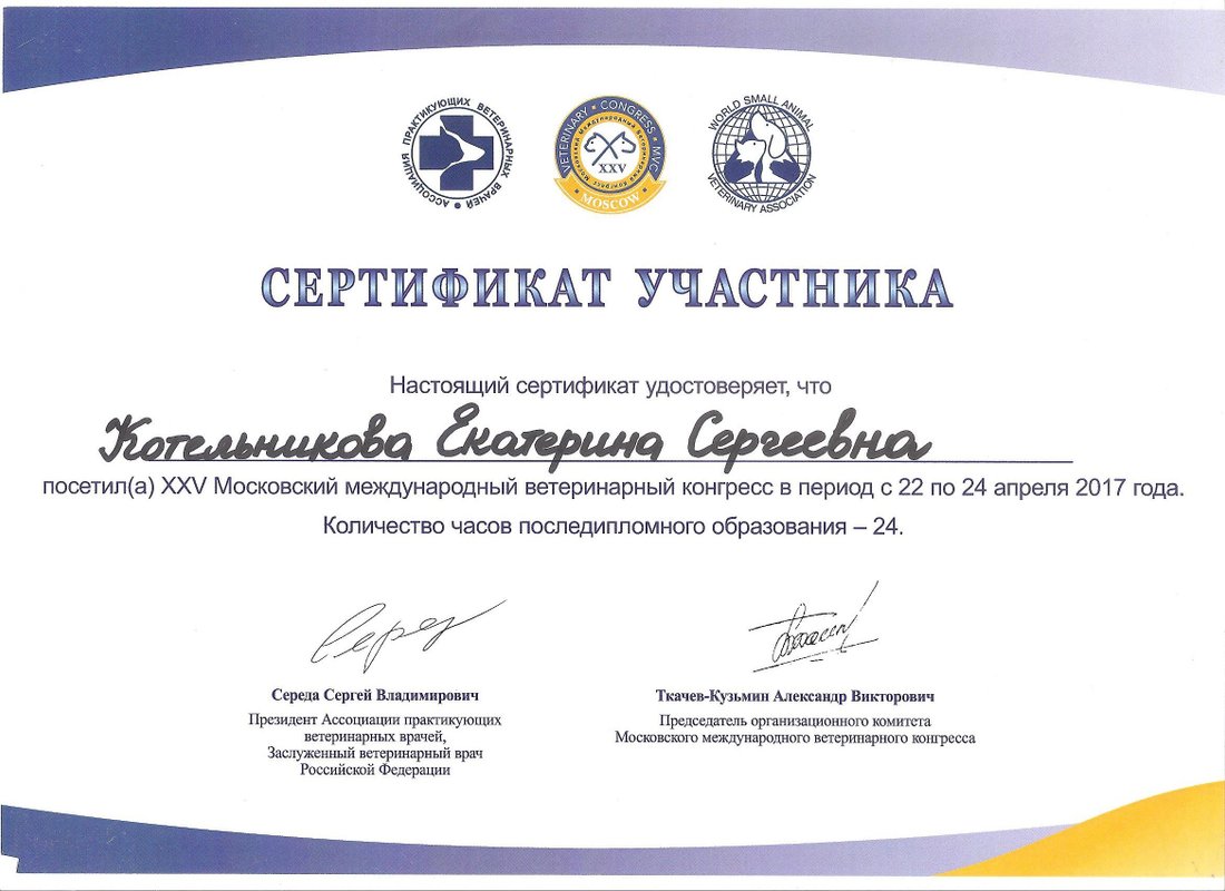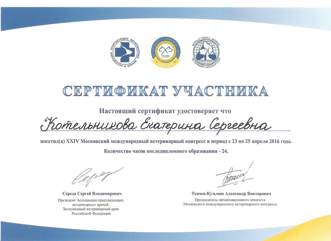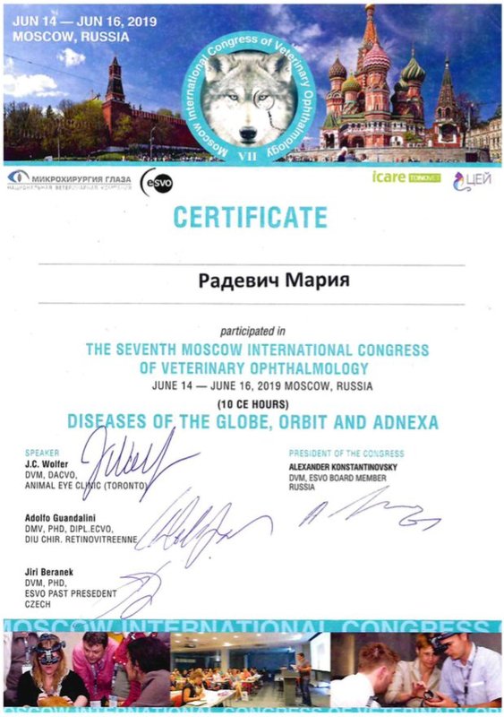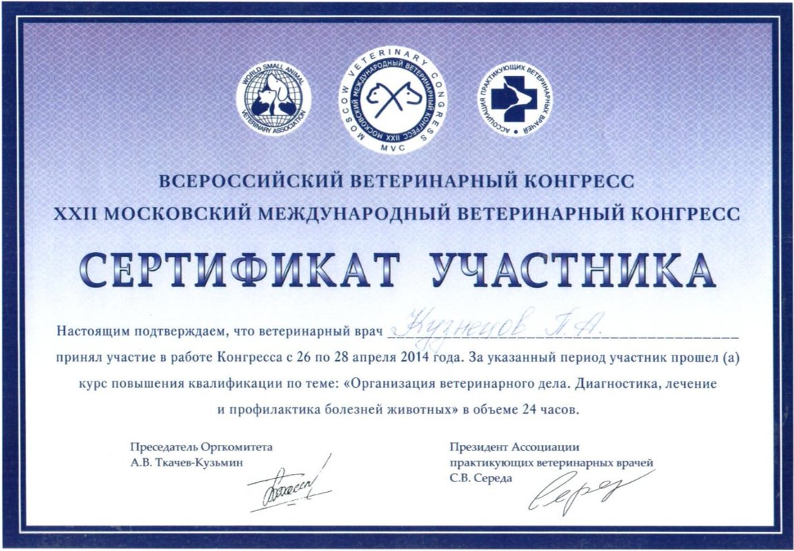 2012 год — участник 20-го Московского Международного Ветеринарного Конгресса.